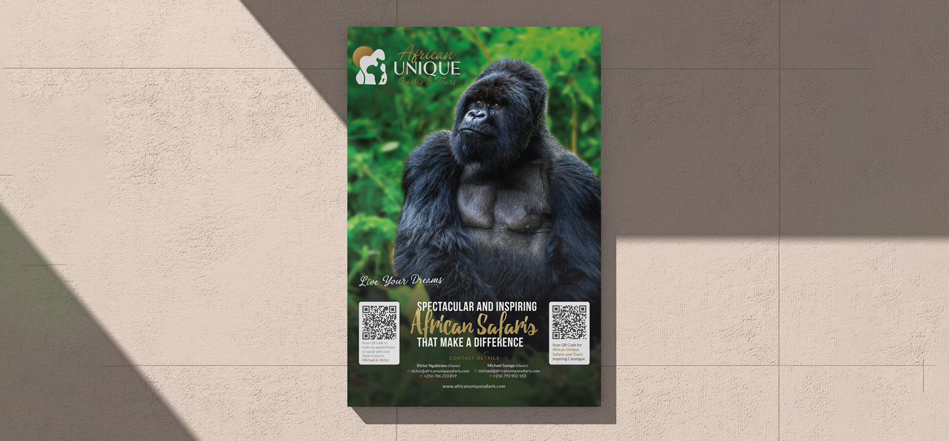 Together, these assets created a professional and premium brand image that effectively communicates the adventure and exclusivity of African Safari’s offerings.